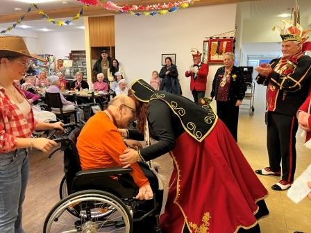 Ein besonders emotionaler Moment war die feierliche Verleihung der Karnevalsorden an zwei unserer Bewohner. Unter großem Applaus wurden sie für ihre Lebensfreude, ihre aktive Teilnahme und ihre karnevalistische Begeisterung ausgezeichnet – eine wunderbare Würdigung, die für strahlende Gesichter sorgte.