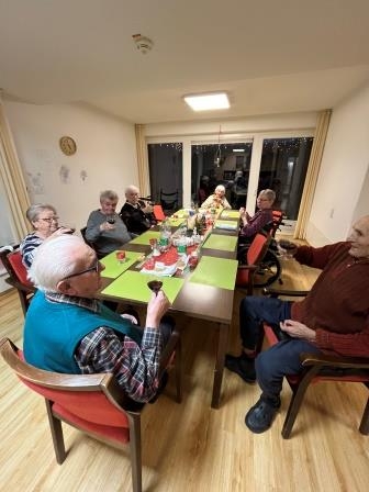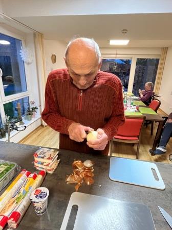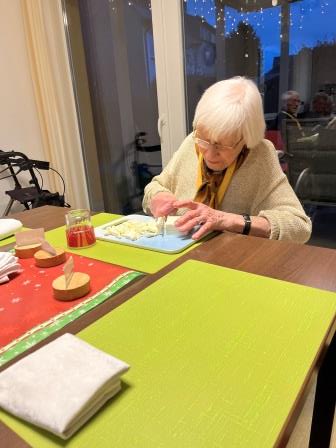 Schon am Nachmittag füllte sich die Wohnküche mit geschäftigem Treiben: Schneidebretter wurden verteilt, Schürzen gebunden, und der Blätterteig wurde mit großer Sorgfalt (und gelegentlichem Augenzwinkern) zu kunstvollen Rollen geformt. Die Bewohner*innen waren mit viel Engagement dabei.