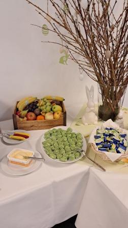 Der Osterbrunch war nicht nur Teil seiner praktischen Prüfung, sondern auch eine wunderbare Gelegenheit für alle Mitarbeitenden, den Alltag kurz hinter sich zu lassen und die festliche Atmosphäre gemeinsam zu genießen. Das gesamte Team gratuliert Fabian herzlich zu dieser gelungenen Leistung und dankt ihm für diesen besonderen Moment der Wertschätzung!