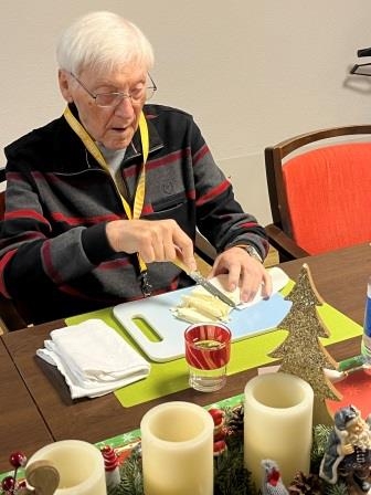 Schon am Nachmittag füllte sich die Wohnküche mit geschäftigem Treiben: Schneidebretter wurden verteilt, Schürzen gebunden, und der Blätterteig wurde mit großer Sorgfalt (und gelegentlichem Augenzwinkern) zu kunstvollen Rollen geformt. Die Bewohner*innen waren mit viel Engagement dabei.