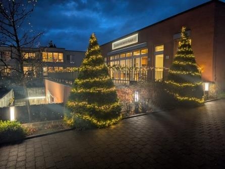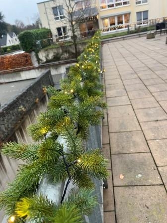 Die Terrasse an unserer Cafeteria, der Vorgarten und die Balkone der Wohnküchen erstrahlen bereits im warmen Glanz der Lichterketten. Dazu kommen weihnachtliche Dekorationen, die liebevoll von Mitarbeitenden und Bewohner*innen ihren Platz gefunden haben – mal klassisch, mal kreativ, aber immer mit Herz.