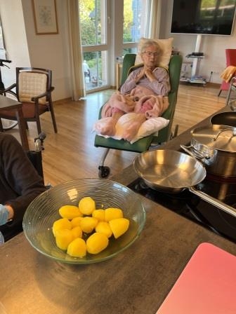 Im Eduard-Michelis Haus wurde wieder fleißig gekocht! Gemeinsam mit unseren Bewohnerinnen und Bewohnern haben wir leckere Frikadellen und knusprige Bratkartoffeln zubereitet. Schon beim Schälen, Schneiden und Formen duftet es herrlich nach Hausmannskost und weckte viele Erinnerungen an frühere Zeiten.