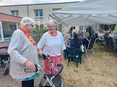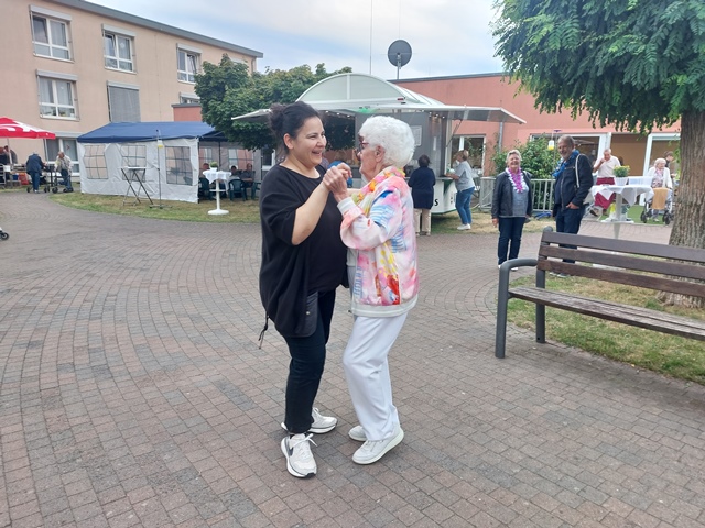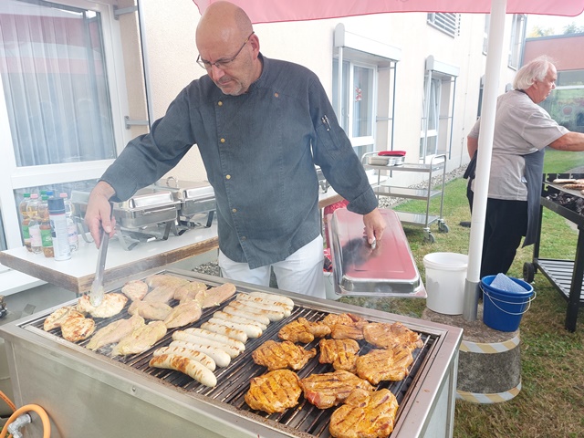 Für Bewegung und gute Laune sorgte das Team unseres aktuellen Arbeitsplatzprogramms mit einem kreativen und barrierefreien Bewegungsangebot, das viele Bewohner*innen mit Begeisterung angenommen haben. Musikalisch begleitet werden wir heute von Wolfgang und Kompagnon, die mit Live-Musik für echte Sommerfest-Stimmung sorgen – von leisen Tönen bis zum Mitschunkeln ist alles dabei. Und auch der Abend verspricht genussvoll zu werden: Beim gemeinsamen Grillen klingt der Tag gemütlich aus, begleitet von Gesprächen, Lachen und immer wieder einem herzlichen Anstoßen – auf das Leben, die Gemeinschaft und das, was uns verbindet.