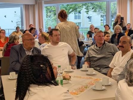 Nach 5 gemeineinsamen, prägenden Jahren hat unsere Einrichtungsleitung Frau Kitzhofer das Eduard-Michelis-Haus verlassen. Sie ließ es sich nicht nehmen, sich in der Quartalsgeburtstagsfeier von „ihren“ Bewohnerinnen und Bewohnern zu verabschieden. Den letzten Arbeitstag haben wir Mitarbeitenden genutzt und uns zur Verabschiedung im Saal getroffen. Den Abschluss des Tages machten dann die Angehörigen und Frau Hildegard Kuhlmann, die Vorsitzende des Stiftunrates, beim Angehörigenabend.