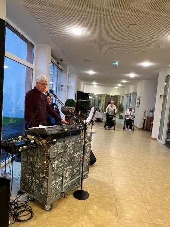 Schon nach den ersten Takten kamen unsere Bewohner*innen, Angehörigen und Mitarbeitenden in der Cafeteria zusammen – bereit für ein paar beschwingte Schritte oder ein ruhiges Beisammensein bei Kaffee und Kuchen. Der Raum war voller Lachen, Gesprächen und dem kleinen, feinen Chaos, das entsteht, wenn die Hüften für einen Walzer geschwungen werden und gleichzeitig der Kuchenteller noch auf dem Tisch steht.
